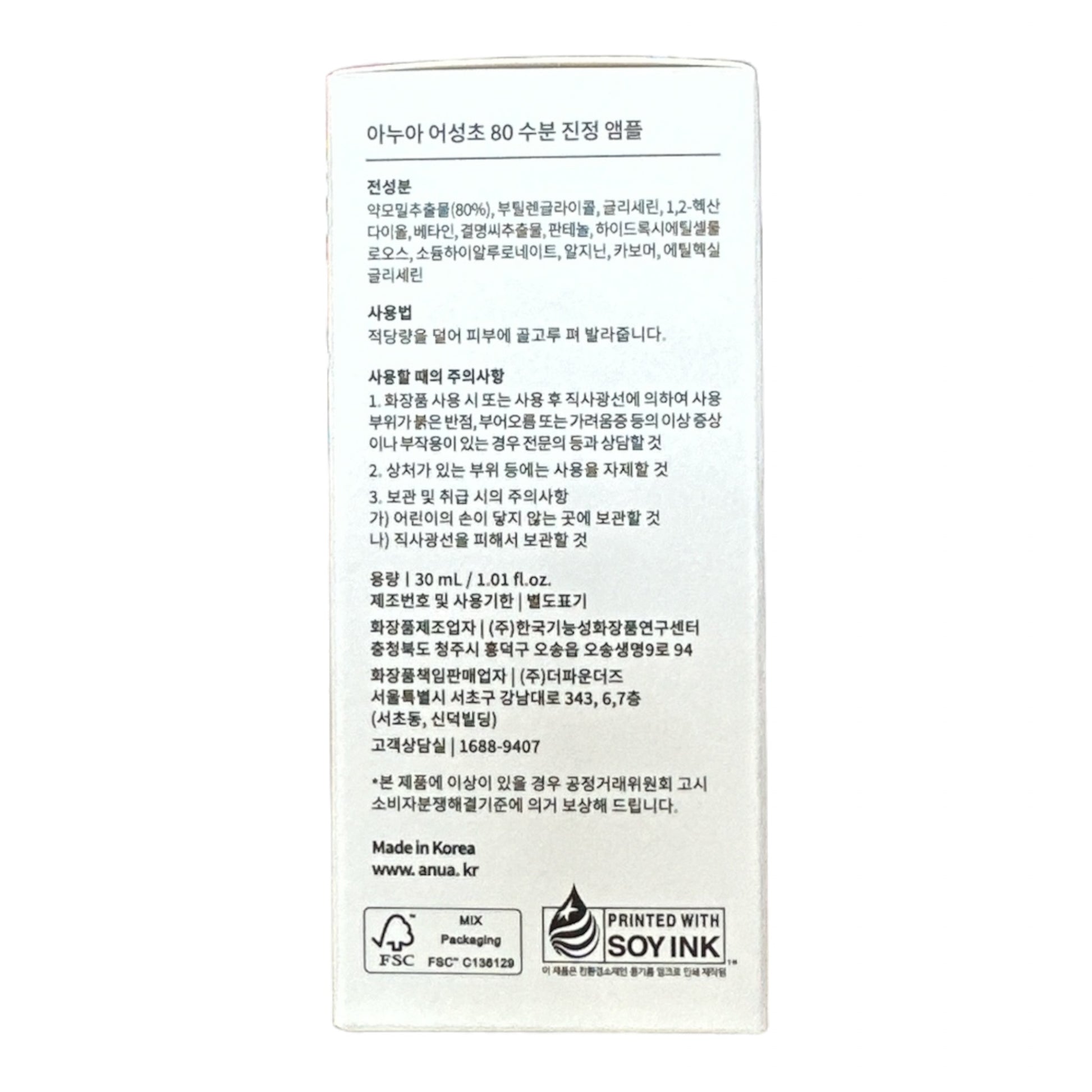 ANUA Heartleaf 80 Moisture Soothing Ampoule 80% (30ml)